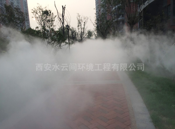 高檔住宅小區(qū)霧噴系統(tǒng)景觀造霧,勝似仙境,提升住宅居民品質(zhì),享受高檔生活品質(zhì),身臨其中,若隱若現(xiàn),如夢(mèng)幻似仙境,美妙絕倫。置身其外,瞥見那云霧繚繞的美景更是會(huì)浮想連翩。此項(xiàng)技術(shù)的運(yùn)用可以增加景觀的視覺效果,通過其釋放大量負(fù)離子有益于人體身心,并且夏天還可以對(duì)周圍環(huán)境起到降溫作用。