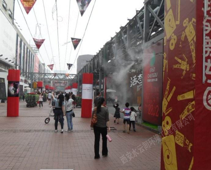 由于城市的熱島效應(yīng)造成空調(diào)和火電廠的加速運(yùn)轉(zhuǎn)又會(huì)造成惡性循環(huán),加劇城市大氣溫升。解決城市大氣熱污染 的最好辦法是增大蒸發(fā)量,受城市安裝的限制,采用噴霧系統(tǒng)是一種高效且經(jīng)濟(jì)的辦法。蒸發(fā)量在0.05g/s㎡時(shí)(白天11小時(shí)相當(dāng)于2mm降雨量),大氣平均降溫達(dá)7℃。 噴霧降溫應(yīng)用的很早,在2002年就給出了室外大規(guī)模噴霧降溫系統(tǒng)的解決方案,但大規(guī)模的首次應(yīng)用是在日本的愛知世博會(huì),最成功的應(yīng)用是在上海世博會(huì)。 到目前為止,大多數(shù)情況下,室外溫度是無(wú)法控制的,而很多時(shí)候人們又必須在炎熱、沉悶的場(chǎng)所帶上幾個(gè)小時(shí)或更久,如露天廣場(chǎng)、運(yùn)動(dòng)場(chǎng)館、游樂場(chǎng)等等。