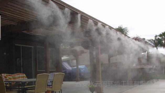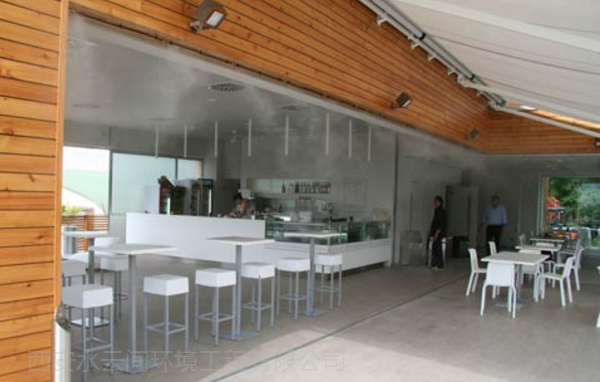 戶外空間環(huán)境降溫,可以局部地控制大環(huán)境的溫度。人造霧降溫系統(tǒng)散發(fā)到空氣中的水微粒,在汽化的過(guò)程中要吸收大量周圍環(huán)境中的熱量,蒸發(fā)冷卻從而降低周圍環(huán)境溫度的原理,是戶外防暑降溫的有效手段。