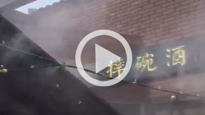 兵馬俑摔碗酒門頭噴霧降溫